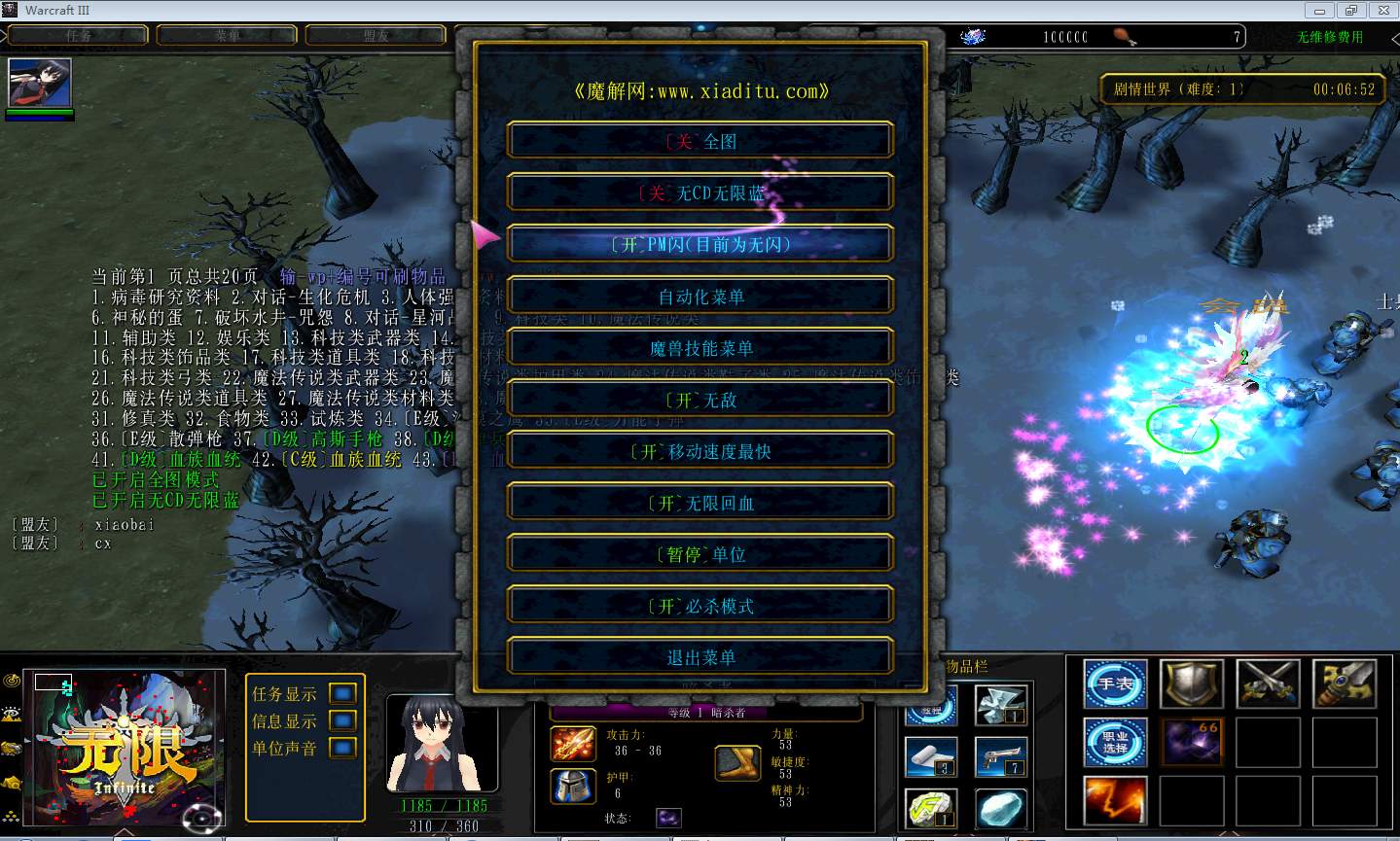 | 开启/关闭 移动速度最快 | 开启/关闭 无限回血 |