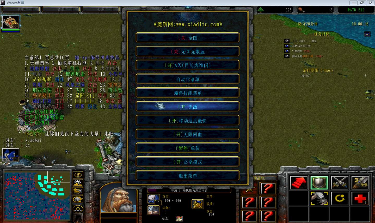 | 技能菜单【光环类技能】 | 自动化菜单【自动加钱木,提升英雄三围】 |