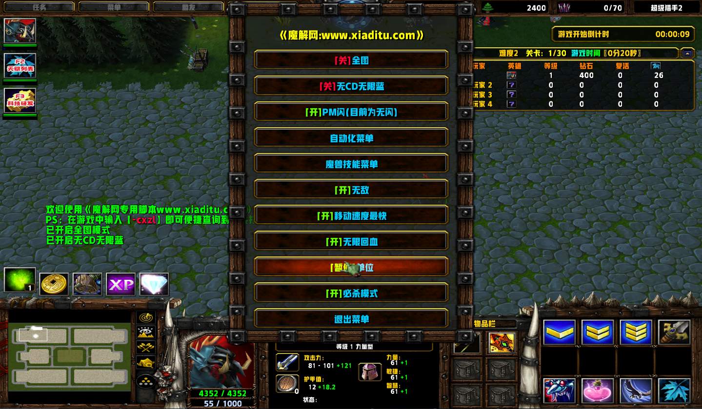 | 可设置英雄经验倍率 | 可解绑单位身上的物品 |