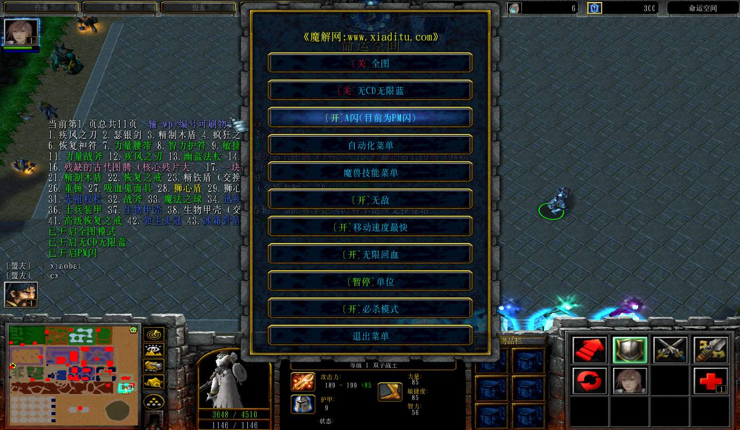 | 技能菜单【光环类技能】 | 自动化菜单【自动加钱木,提升英雄三围】 |