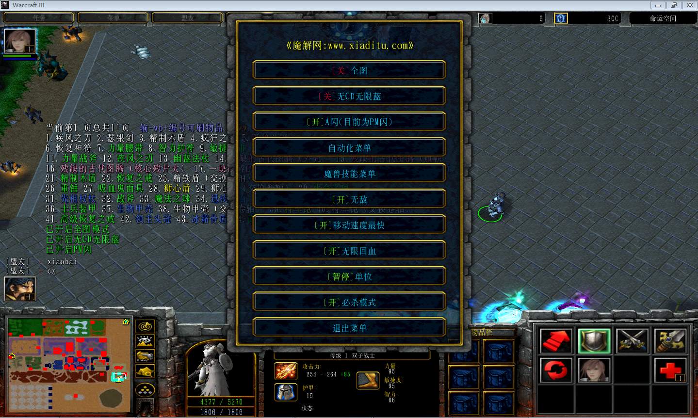 | 开启/关闭 移动速度最快 | 开启/关闭 无限回血 |