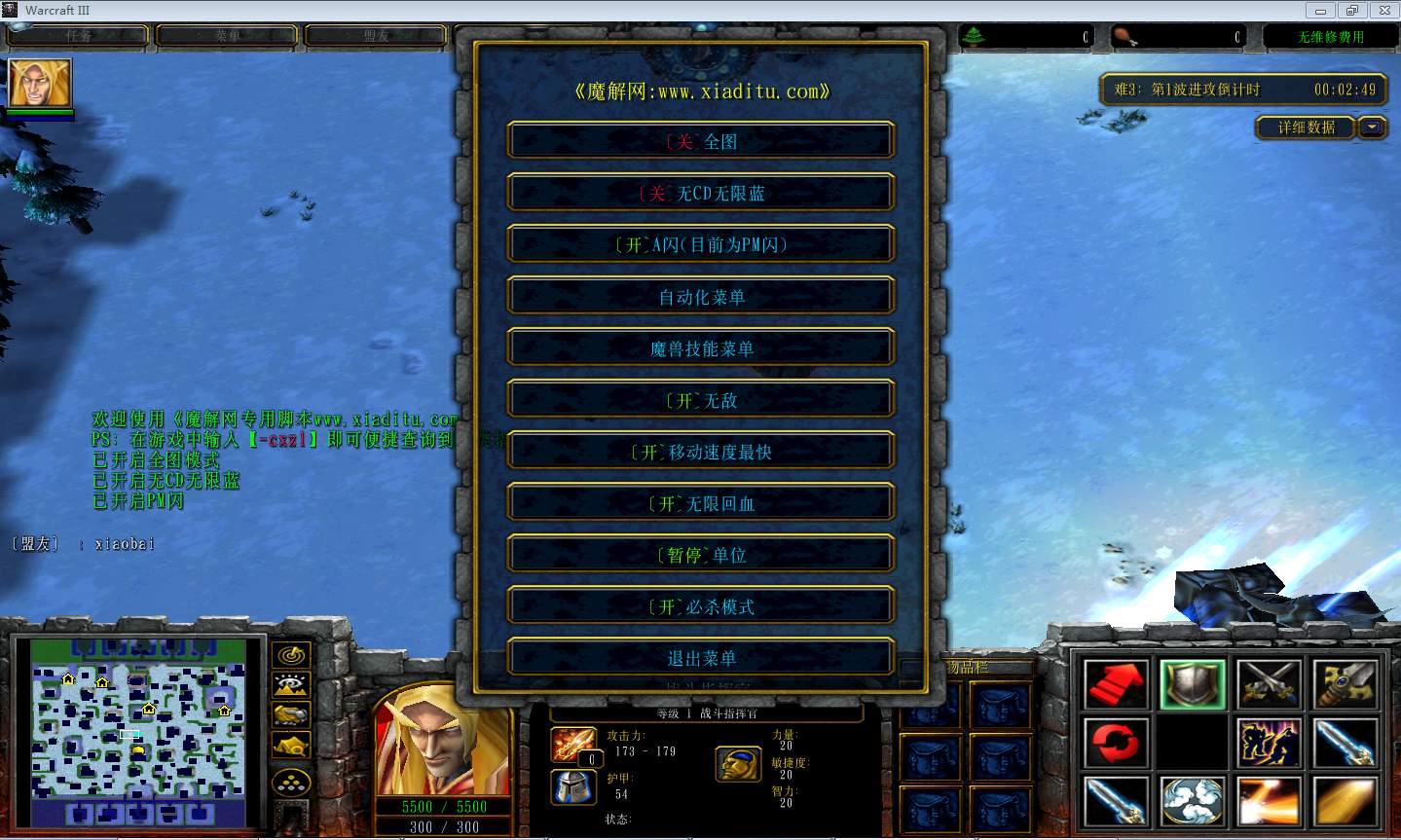 | 技能菜单【光环类技能】 | 自动化菜单【自动加钱木,提升英雄三围】 |