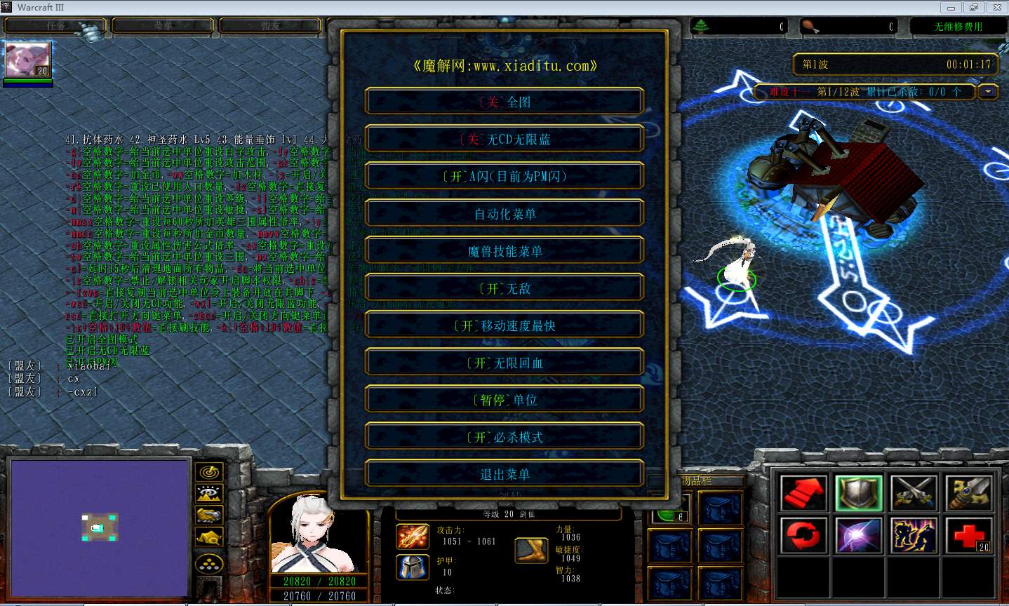 | 技能菜单【光环类技能】 | 自动化菜单【自动加钱木,提升英雄三围】 |