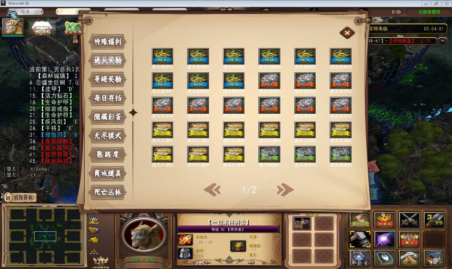 | 技能菜单【光环类技能】 | 自动化菜单【自动加钱木,提升英雄三围】 |