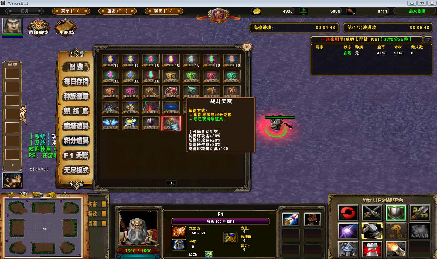 | 技能菜单【光环类技能】 | 自动化菜单【自动加钱木,提升英雄三围】 |