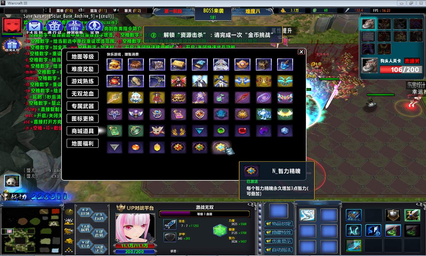 | 技能菜单【光环类技能】 | 自动化菜单【自动加钱木,提升英雄三围】 |