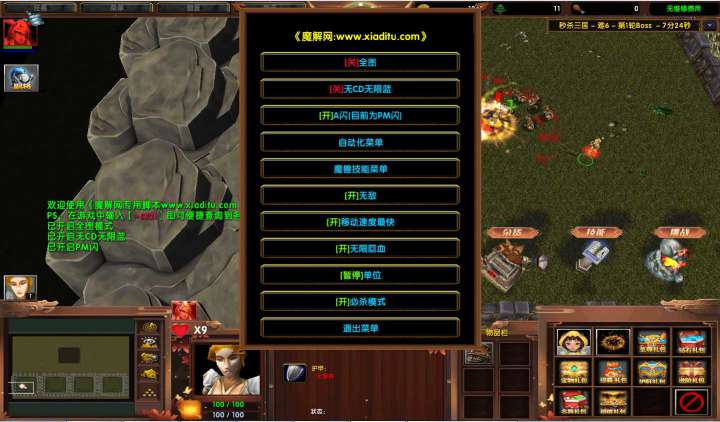 | 技能菜单【光环类技能】 | 自动化菜单【自动加钱木,提升英雄三围】 |