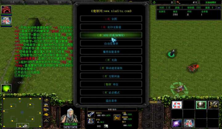| 技能菜单【光环类技能】 | 自动化菜单【自动加钱木,提升英雄三围】 |
