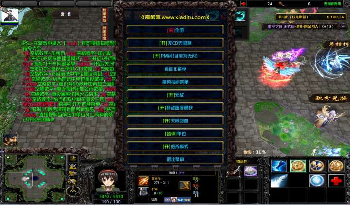 | 技能菜单【光环类技能】 | 自动化菜单【自动加钱木,提升英雄三围】 |