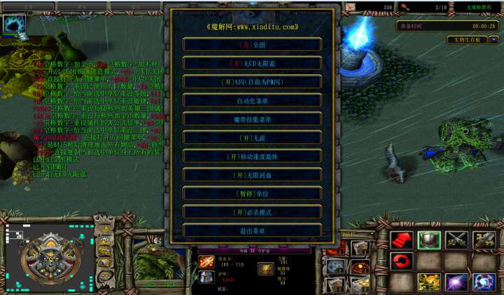 | 技能菜单【光环类技能】 | 自动化菜单【自动加钱木,提升英雄三围】 |