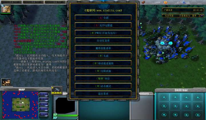 | 技能菜单【光环类技能】 | 自动化菜单【自动加钱木,提升英雄三围】 |