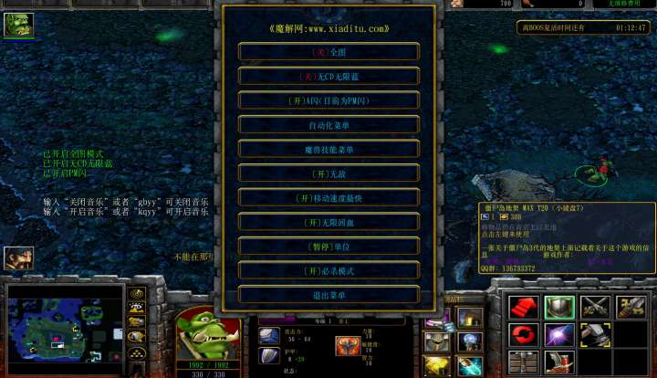 | 技能菜单【光环类技能】 | 自动化菜单【自动加钱木,提升英雄三围】 |