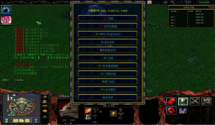 | 开启/关闭 移动速度最快 | 开启/关闭 无限回血 |