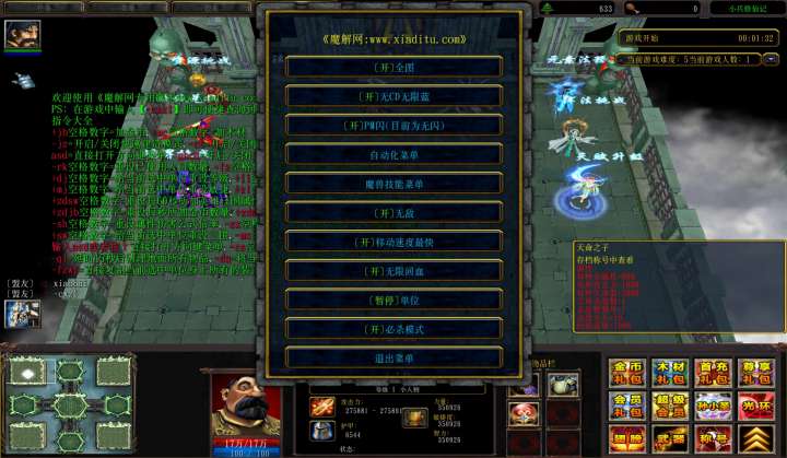 | 技能菜单【光环类技能】 | 自动化菜单【自动加钱木,提升英雄三围】 |