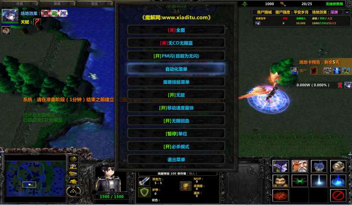 | 技能菜单【光环类技能】 | 自动化菜单【自动加钱木,提升英雄三围】 |