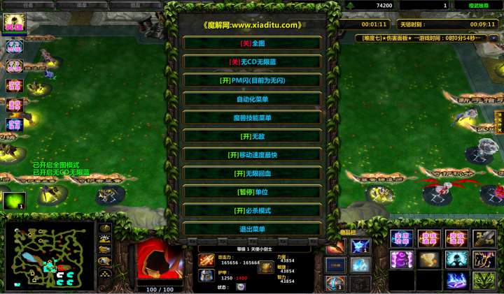 | 技能菜单【光环类技能】 | 自动化菜单【自动加钱木,提升英雄三围】 |