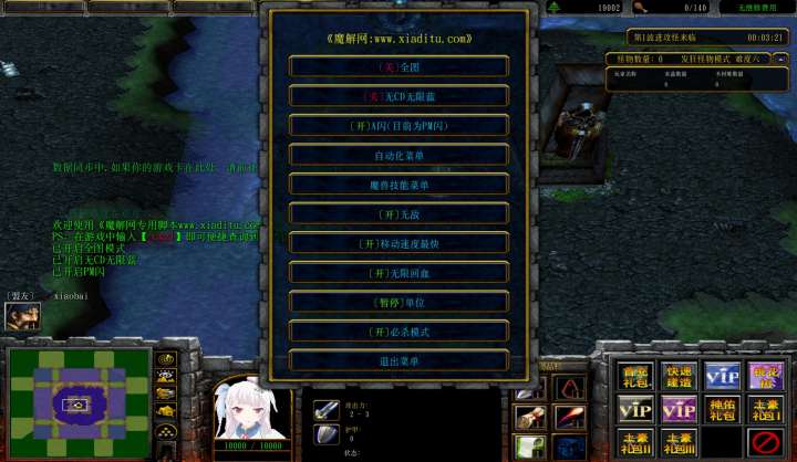 | 技能菜单【光环类技能】 | 自动化菜单【自动加钱木,提升英雄三围】 |