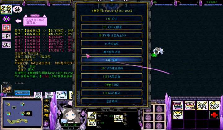 | 开启/关闭 移动速度最快 | 开启/关闭 无限回血 |