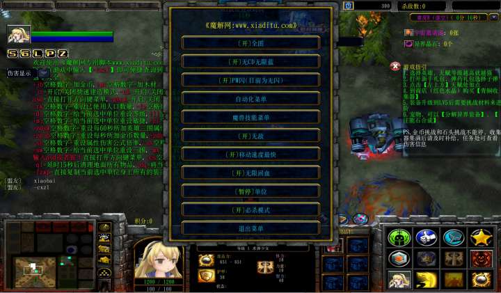 | 技能菜单【光环类技能】 | 自动化菜单【自动加钱木,提升英雄三围】 |