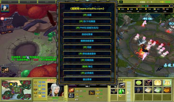 | 技能菜单【光环类技能】 | 自动化菜单【自动加钱木,提升英雄三围】 |