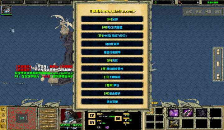 | 技能菜单【光环类技能】 | 自动化菜单【自动加钱木,提升英雄三围】 |