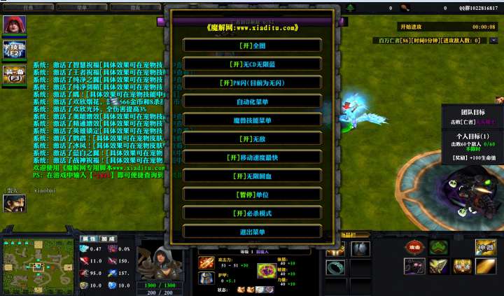 | 技能菜单【光环类技能】 | 自动化菜单【自动加钱木,提升英雄三围】 |