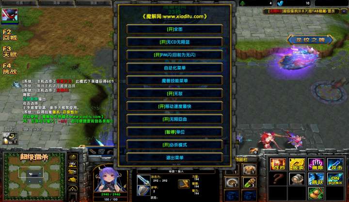 | 技能菜单【光环类技能】 | 自动化菜单【自动加钱木,提升英雄三围】 |