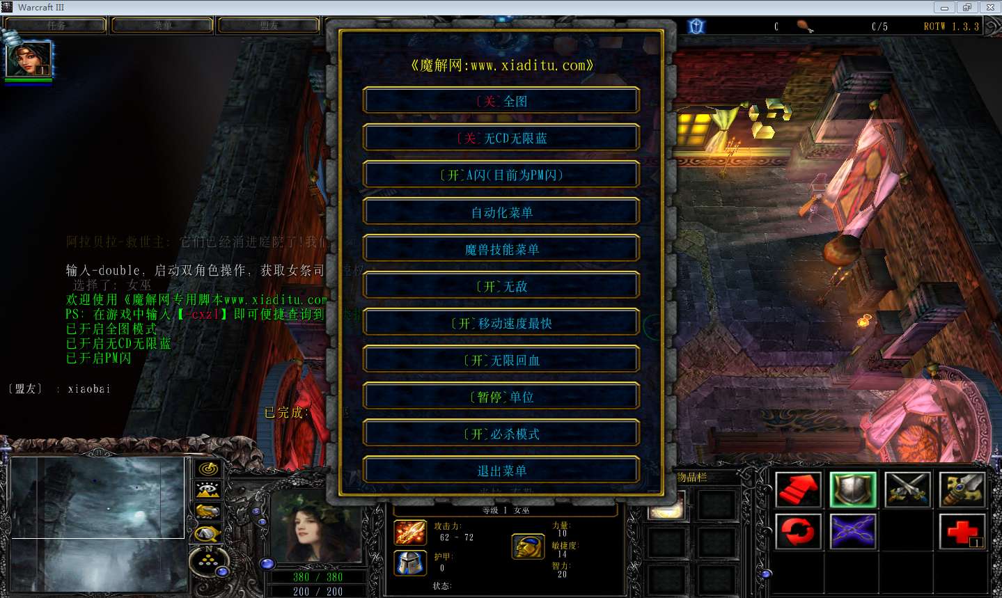 | 技能菜单【光环类技能】 | 自动化菜单【自动加钱木,提升英雄三围】 |