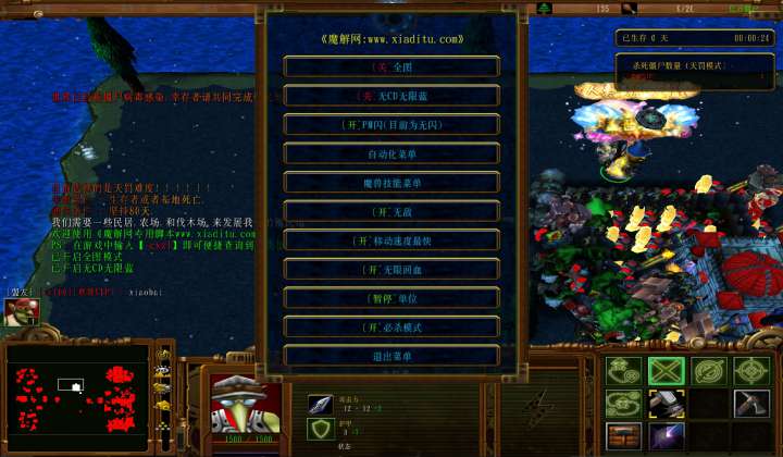| 技能菜单【光环类技能】 | 自动化菜单【自动加钱木,提升英雄三围】 |