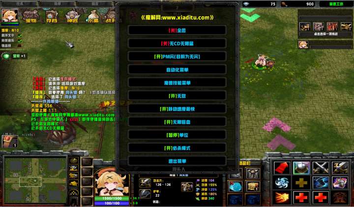 | 技能菜单【光环类技能】 | 自动化菜单【自动加钱木,提升英雄三围】 |
