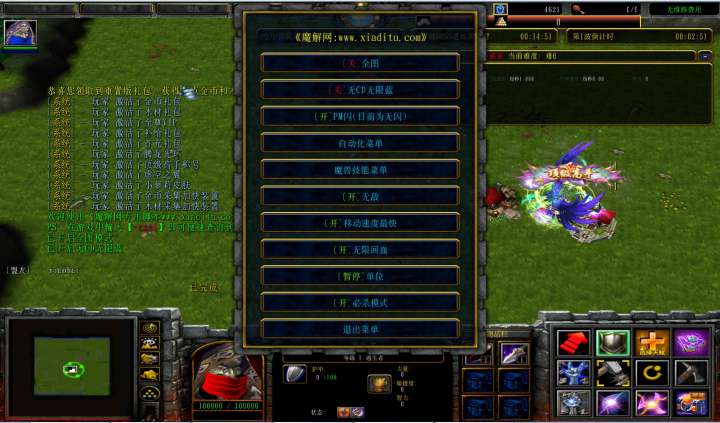 | 技能菜单【光环类技能】 | 自动化菜单【自动加钱木,提升英雄三围】 |