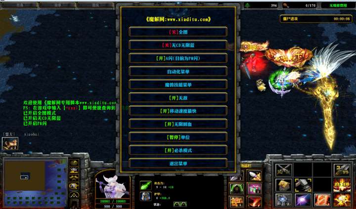 | 技能菜单【光环类技能】 | 自动化菜单【自动加钱木,提升英雄三围】 |