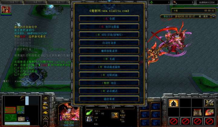 | 技能菜单【光环类技能】 | 自动化菜单【自动加钱木,提升英雄三围】 |