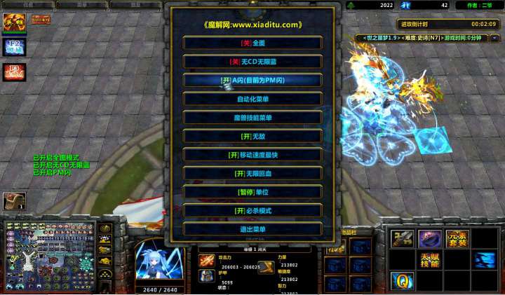 | 技能菜单【光环类技能】 | 自动化菜单【自动加钱木,提升英雄三围】 |
