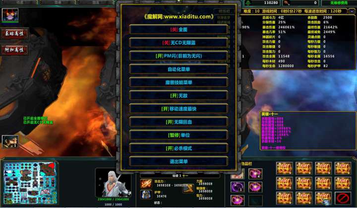 | 技能菜单【光环类技能】 | 自动化菜单【自动加钱木,提升英雄三围】 |