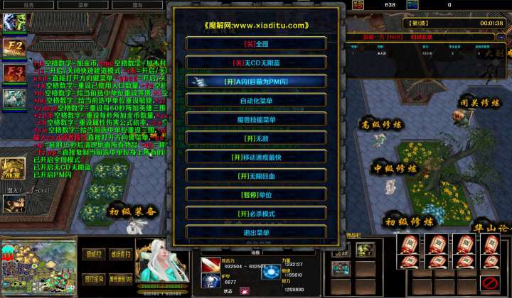 | 技能菜单【光环类技能】 | 自动化菜单【自动加钱木,提升英雄三围】 |