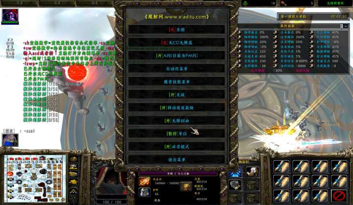 | 技能菜单【光环类技能】 | 自动化菜单【自动加钱木,提升英雄三围】 |