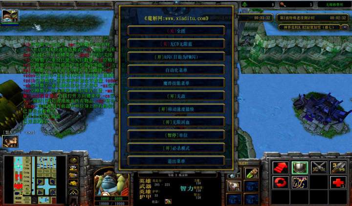 | 技能菜单【光环类技能】 | 自动化菜单【自动加钱木,提升英雄三围】 |