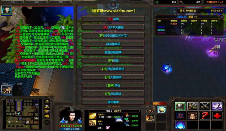 | 开启/关闭 移动速度最快 | 开启/关闭 无限回血 |