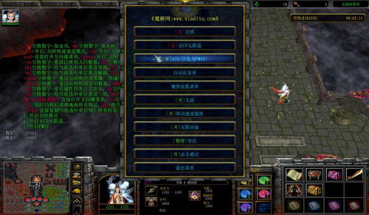 | 技能菜单【光环类技能】 | 自动化菜单【自动加钱木,提升英雄三围】 |