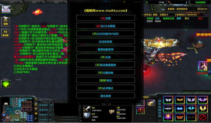 | 开启/关闭 移动速度最快 | 开启/关闭 无限回血 |