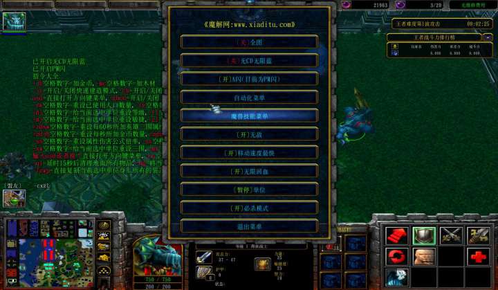 | 技能菜单【光环类技能】 | 自动化菜单【自动加钱木,提升英雄三围】 |