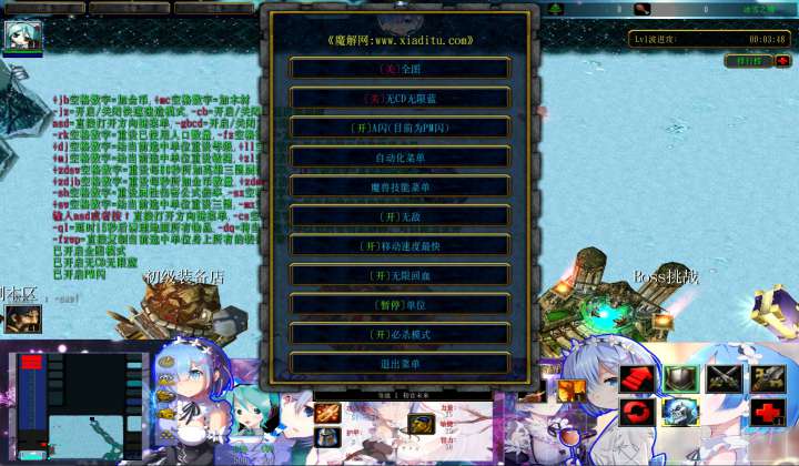 | 技能菜单【光环类技能】 | 自动化菜单【自动加钱木,提升英雄三围】 |