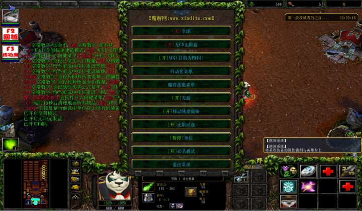 | 技能菜单【光环类技能】 | 自动化菜单【自动加钱木,提升英雄三围】 |
