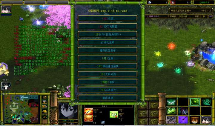| 技能菜单【光环类技能】 | 自动化菜单【自动加钱木,提升英雄三围】 |