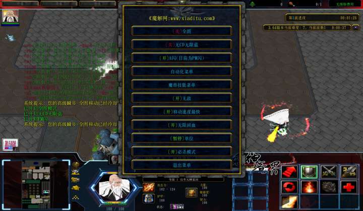 | 技能菜单【光环类技能】 | 自动化菜单【自动加钱木,提升英雄三围】 |