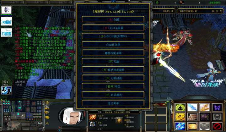 | 技能菜单【光环类技能】 | 自动化菜单【自动加钱木,提升英雄三围】 |