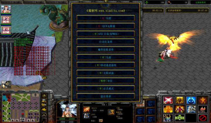 | 技能菜单【光环类技能】 | 自动化菜单【自动加钱木,提升英雄三围】 |