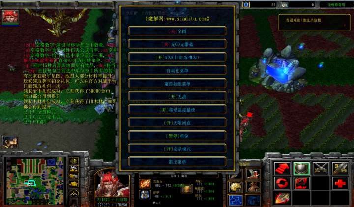 | 开启/关闭 移动速度最快 | 开启/关闭 无限回血 |