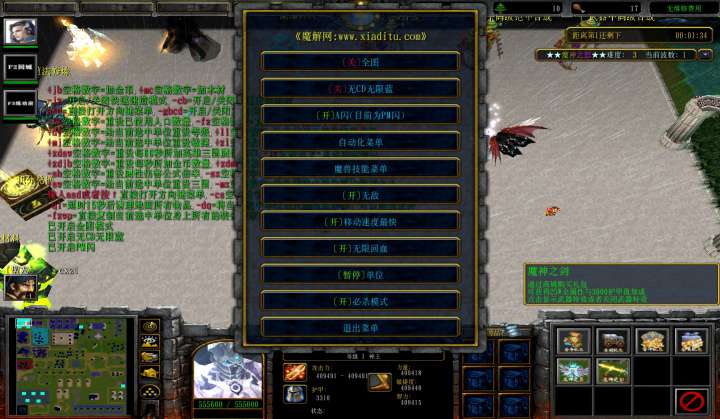 | 技能菜单【光环类技能】 | 自动化菜单【自动加钱木,提升英雄三围】 |
